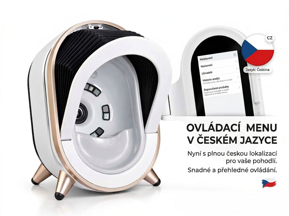 - 🔬 multispektrální analýza pleti (RGB + UV + polarizované světlo)