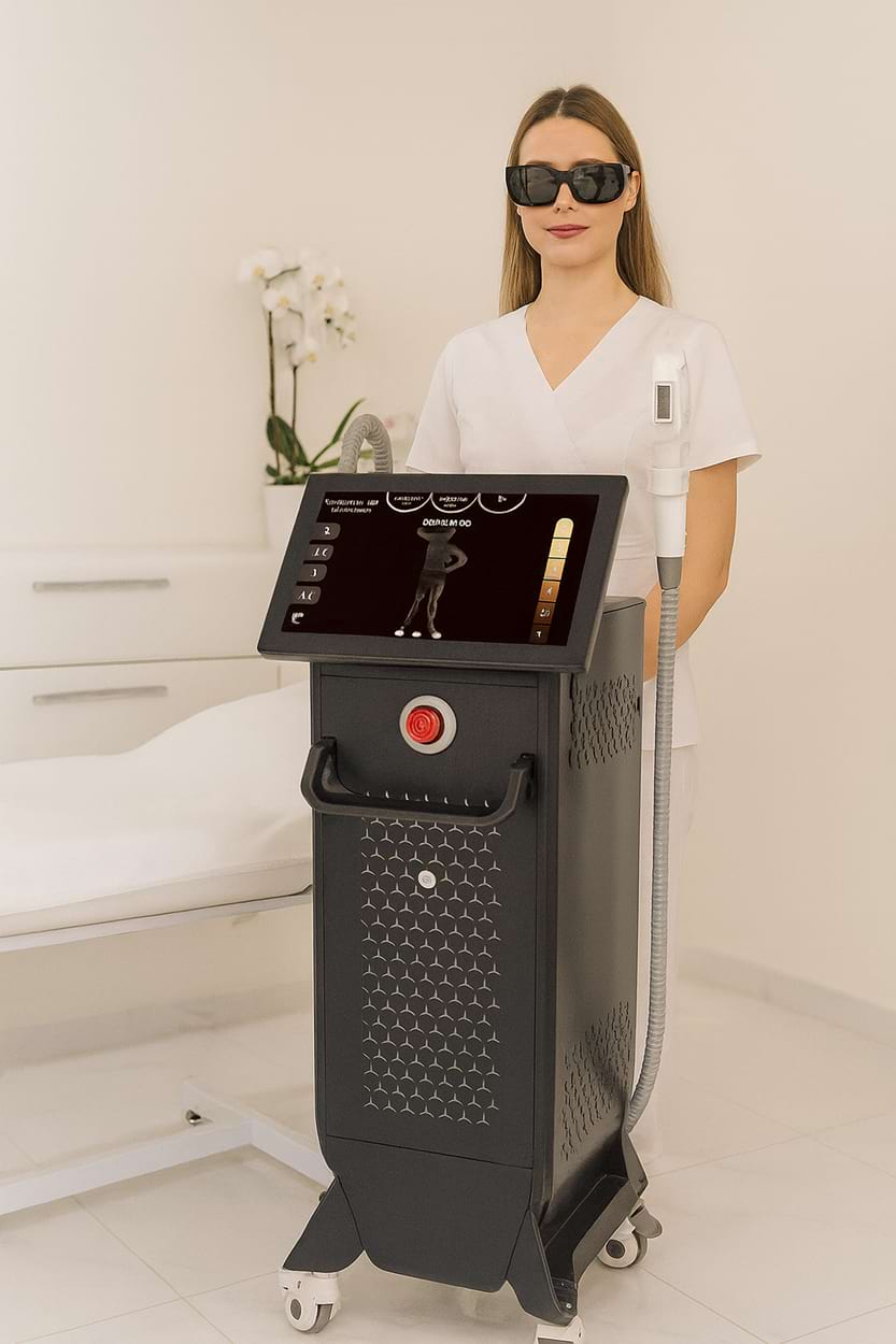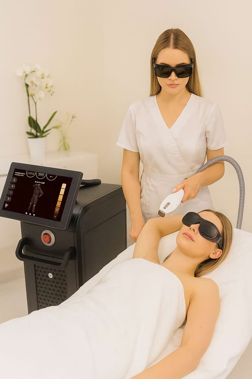 Diodový laser (755/808 nm): Nejefektivnější řešení pro trvalou epilaci všech typů chloupků s maximální účinností a bezpečím i u tmavších fototypů pleti..