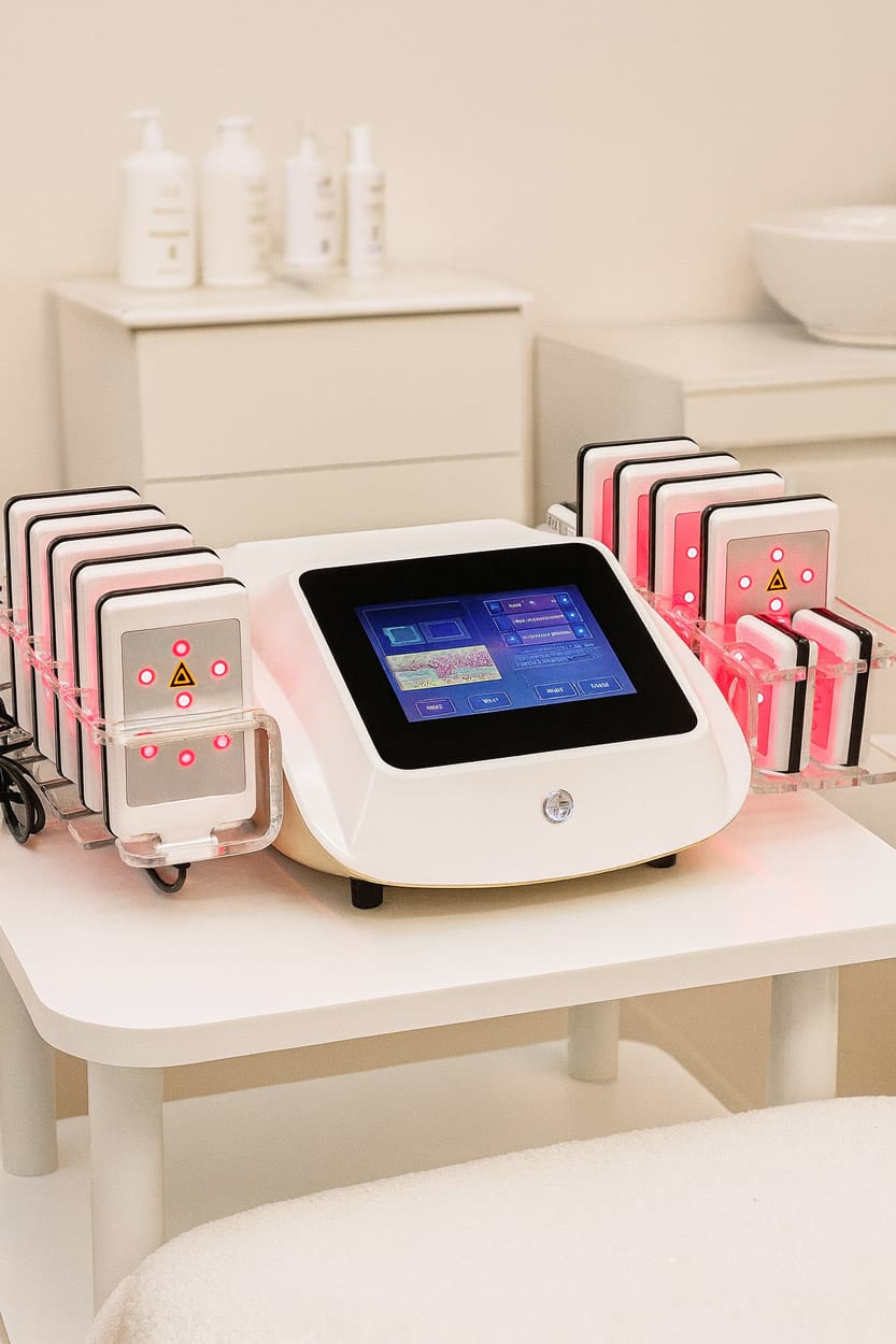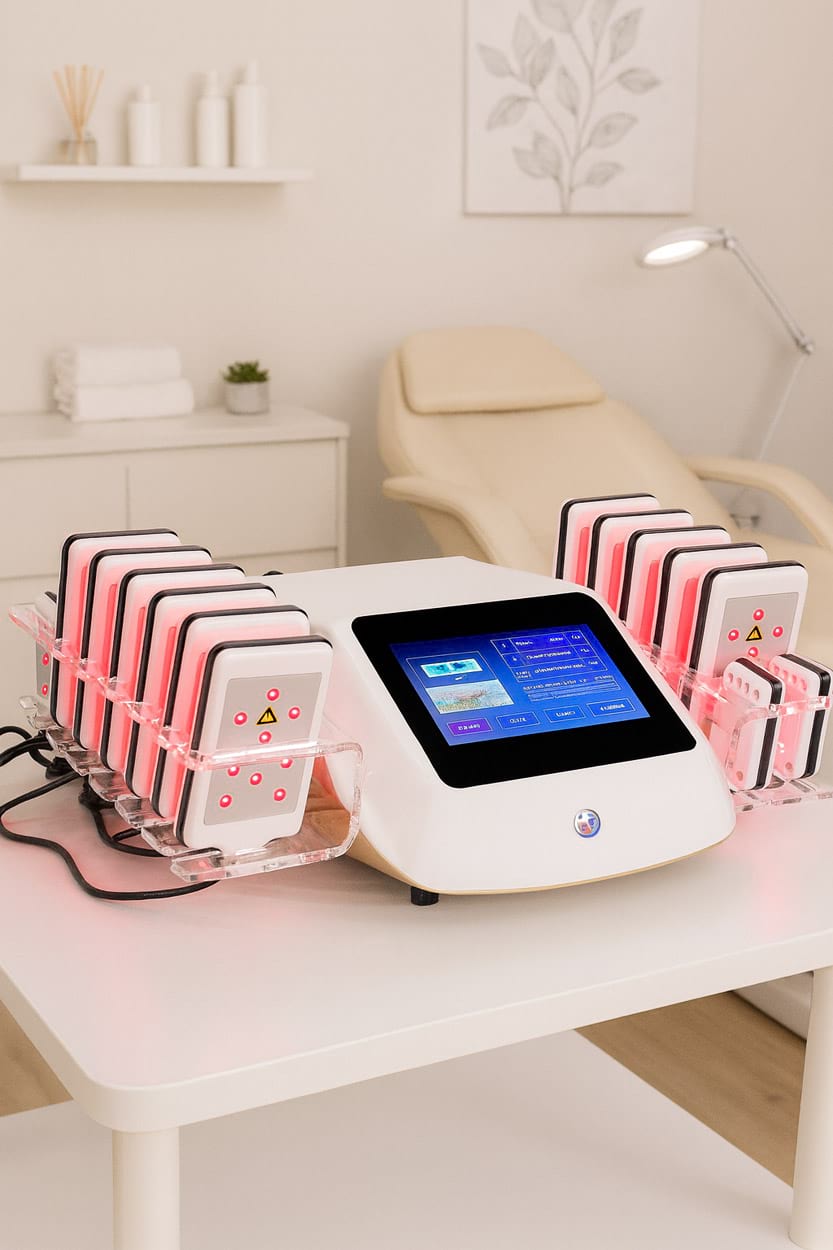 Působení laserového světla dokáže navodit v těle stejné procesy, které probíhají, když aktivně sportujeme takovým způsobem, že dochází ke spotřebování energie z tukových zásob. Přístroj působí sadou 36 laserových světel na problematické partie nízko úrovňovým diodovým laserem s vlnovou délkou v rozsahu 635nm až 650nm a specifickým výkonem. Světelnou energií je zasažena pouze a výhradně tuková vrstva. Světlo červeného laseru prostupuje pokožkou k tukovým buňkám, kde dochází ke stimulaci mitochondrií. Tím je zahájen proces štěpení triglyceridů na mastné kyseliny a glycerol, které se z buněk uvolňují. Produkty štěpení jsou následně zachyceny lymfatickým systémem těla. Hlavní a zásadní rozdíl je ale v tom, že je proces lipolýzy vyvolán pro tělo nejpřirozenějším způsobem ve srovnání s technologiemi obdobného charakteru. Estetický přístroj na formování postavy BeautyRelax Lipolaser Professional nabízí vysokou efektivitu zmenšení objemu tukové tkáně díky 14 aplikačním hlavicím s laserovým světlem. Záruka 24 měsíců – pro fyzické i právnické osoby bez omezení frekvence použití přístroje. Součást balení je daňový doklad, záruční list s garancí 24 měsíců, český návod k obsluze a prohlášení o shodě.