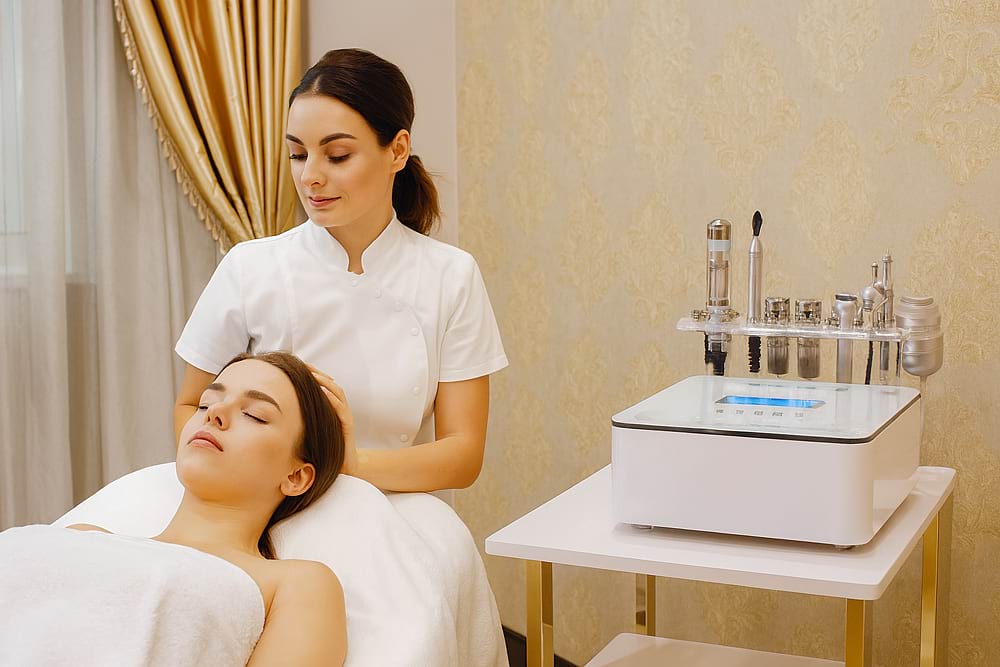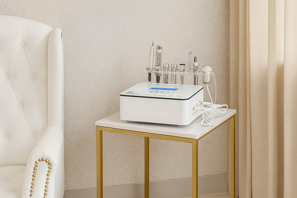 - Technologie: Radiofrekvence, galvanický proud, neinvazivní mezoterapie, diamantová mikrodermabraze, hydratační pistole, působení chladu.