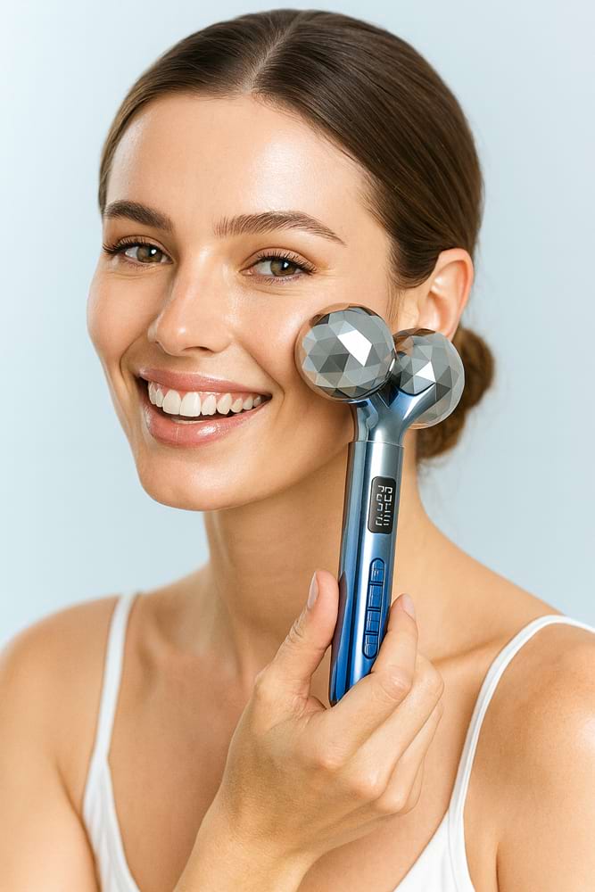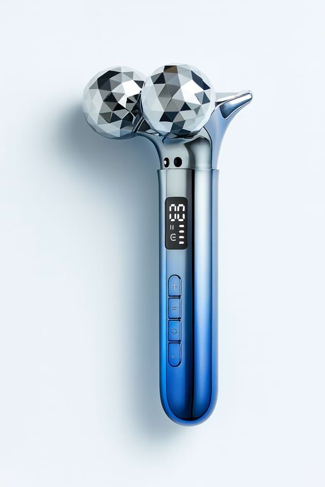 Další důležitou funkcí je 5D masáž pomocí dvou velkých masážních válečků, které se přizpůsobují tvarům obličeje. Masáž podporuje lymfatický systém, pomáhá uvolňovat napětí ve svalech a přispívá ke zlepšení struktury pleti. Vysokofrekvenční vibrace zesilují masážní efekt, stimulují pokožku a zvyšují účinnost celého ošetření. Pravidelná masáž může pomoci redukovat známky únavy a jemné vrásky. Součástí přístroje je také modré LED světlo, které je známé svými pozitivními účinky na stav pokožky. Pomáhá sjednocovat tón pleti, zklidňuje pleť a podporuje její přirozenou obnovu. V kombinaci s EMS a vibracemi dochází k intenzivní stimulaci pokožky a k podpoře tvorby kolagenu, který je klíčový pro pevnost a mladistvý vzhled pleti.