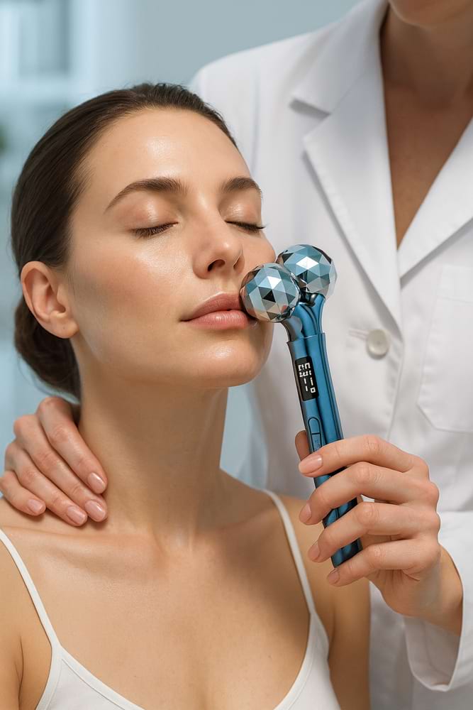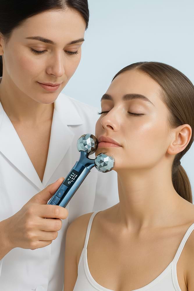 Kosmetický přístroj BeautyRelax Emsroller Premium je moderní zařízení určené pro komplexní péči o pleť obličeje, krku i dekoltu. Je navržen tak, aby pomáhal zpevňovat pokožku, podporoval elasticitu pleti a aktivoval obličejové svaly, které s věkem přirozeně ochabují. Přístroj je vhodný pro všechny, kteří chtějí dosáhnout viditelných výsledků bez nutnosti návštěv kosmetických salonů. Základem účinku je kombinace několika pokročilých technologií. Elektrická stimulace svalů (EMS) vysílá jemné elektrické impulzy, které aktivují hlubší vrstvy obličejových svalů, podporují jejich posílení a pomáhají formovat kontury obličeje. EMS technologie zároveň zlepšuje prokrvení pokožky, čímž napomáhá lepšímu okysličení buněk a regeneraci pleti. Výsledkem může být pevnější, pružnější a svěžejší vzhled pokožky.
