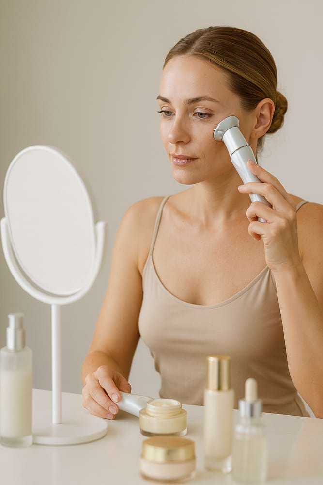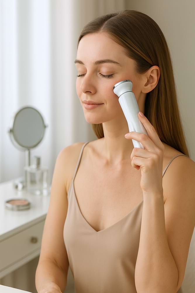 • Moderní technologie: radiofrekvence, mikroproud, EMS pulzy, fotonové světlo (modrá, červená, zelená), vibrace