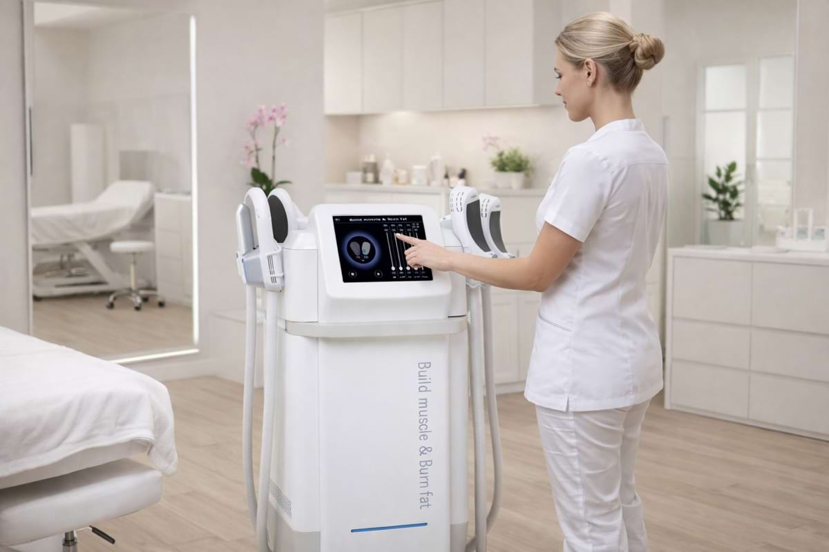 Profesionální elektromagnetická technologie pro extrémně efektivní posílení svalů, formování postavy a redukci tuku.